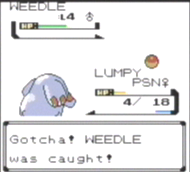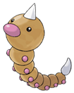 Often found in forests and grasslands. Weedle has a sharp, toxic barb of around two inches on top of its head. Its bright colors are intended to warn off enemies. Weedle has an extremely acute sense of smell. It is capable of distinguishing its favorite kinds of leaves from those it dislikes just by sniffing with its big red proboscis.