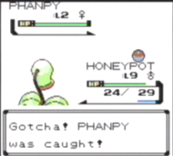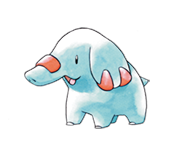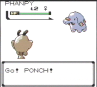 For its nest, Phanpy digs a vertical pit in the ground at the edge of a river. It marks the area around its nest with its trunk to let the others know that the area has been claimed. They use their long nose to shower themselves. When others gather around, they thoroughly douse each other with water. These Pokémon can be seen drying their soaking-wet bodies at the edge of water. Phanpy's big ears serve as broad fans. When it becomes hot, it flaps the ears busily to cool down. As a sign of affection, it bumps with its snout. However, it is so strong, it may send you flying.