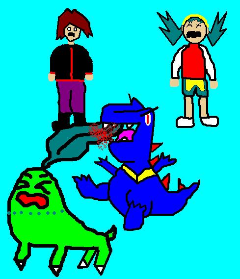 Using the Chikorita he had stolen from Prof. Elm moments before, Gatorface the Totodile battled Chikorita and one in a horribly violent manner.
