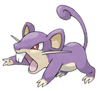 Rattata is cautious in the extreme. Even while it is asleep, it constantly listens by moving its ears around. Small and very quick, it is a common sight in many places. If you see one, it's almost certain at least forty more live nearby. It is not picky about where it lives - it will make its nest anywhere. Its fangs are long and very sharp. They grow continuously, so it gnaws on hard things to whittle them down. It bites anything when it attacks. It eats everything. Wherever food is available, it will settle down and produce offspring continuously.