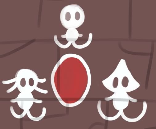 "This cave painting... It's always been described this way. The light in the center represents either Dialga or Palkia appearing at the Spear Pillar. The three lights around it were thought to be Uxie, Mesprit, and Azelf. But, then, I realized that there may be another way of interpreting this. Could this triangle of lights actually represent a different trio?"