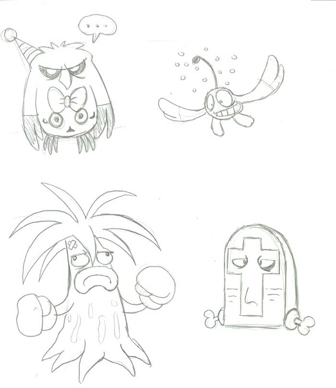 Also felt like drawing some of these other monstrosities. Even a party hat can't break Angstowl out of his emotional fervor.